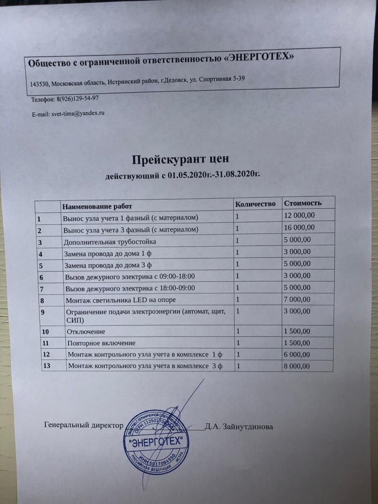 Смена названия и прейскурант на работы с компанией обслуживающей энергетическое оборудование и сети в нашем СНТ. Правление обращает внимание, что повторное включение электричества происходит за счет владельцев участков и только после оплаты на счет СНТ стоимости подключения - 1500 рублей.