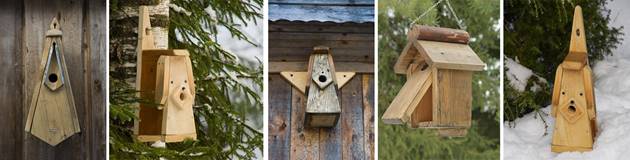 Рисунок 4. Гнездовые домики нашего мастера Олега алехновские птицы встретили с одобрением. Доска толстая, не меньше 2 см, внутри не выстроганная. У одних моделей открывается дверцей дно, у других – удобно поворачивается боковая или передняя стенка. Убрать старое гнездо и навести внутри порядок – минутное дело. В дне предусмотрены дренажные отверстия: вдруг домик зальет косой дождь. Есть даже дополнительная защита от хищников - укрепленный леток. В эксперименте участвовали мухоловки и синицы. Олегу большое спасибо!