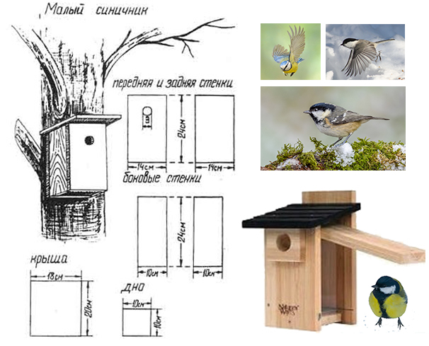 В зависимости от размера и образа жизни разным птицам нужны разные домики. Для мелких птиц, у которых требования примерно совпадают, орнитологи разработали типовые серии, которые при желании легко адаптировать под конкретный вид (см. чертежи в Приложениях). Есть и правила, общие для всех.