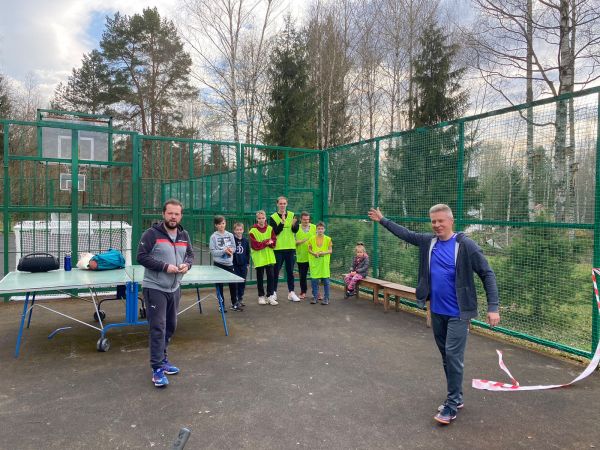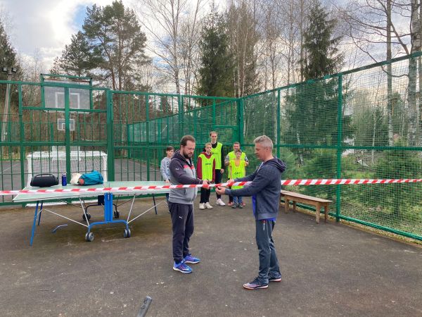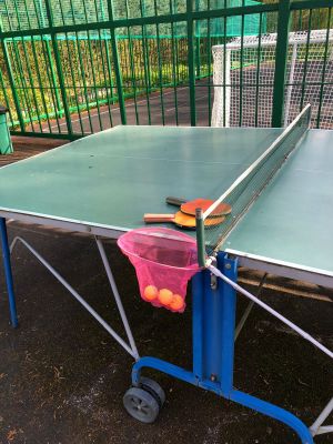 На теннисный стол поставили сетку, есть ракетки и мячики. Все на столе, играйте. По выходным Футбол в 17 часов.